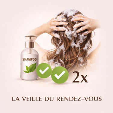 ✔️ La veille du rendez-vous : laver les cheveux avec 2 shampoings